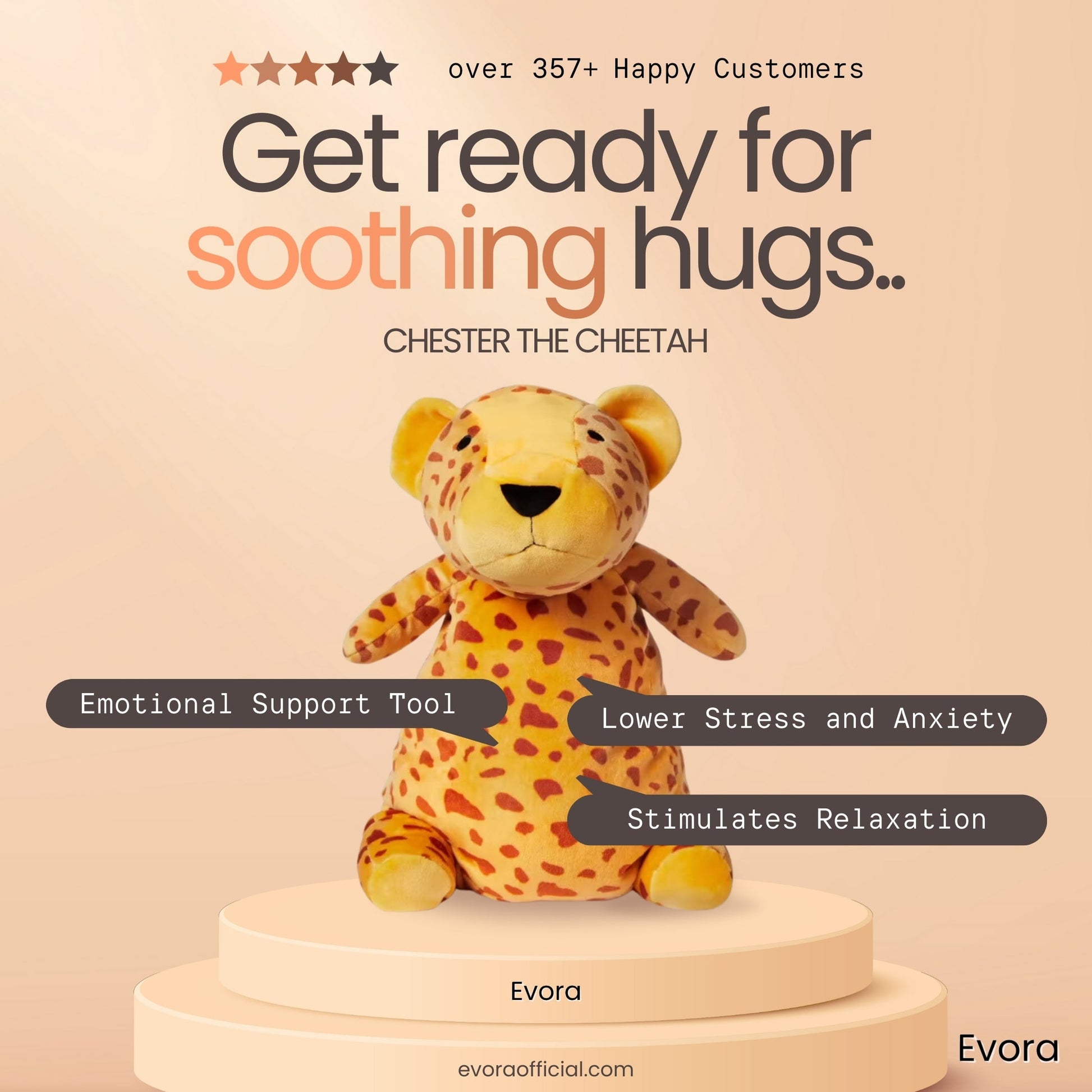 1️⃣ Redukuje napięcie – działa jak ciepły, przytulny uścisk. Jego miękkie ciało i spokojny rytm oddechu pomagają uwolnić stres.